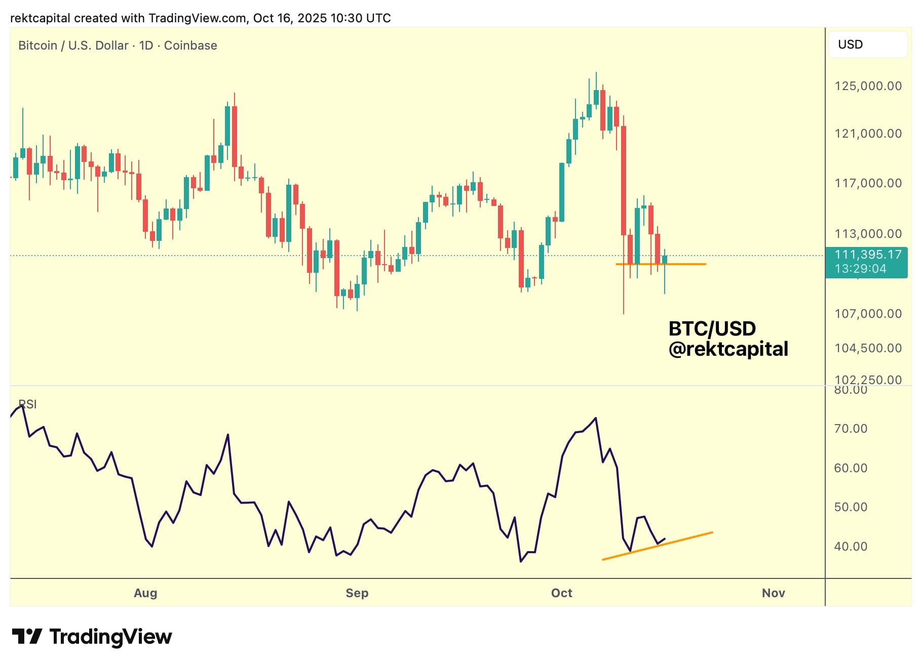 Говоря об индексе относительной силы (RSI), Rekt Capital указал на «зарождающуюся» бычью дивергенцию с ценой — потенциальный признак повышения.