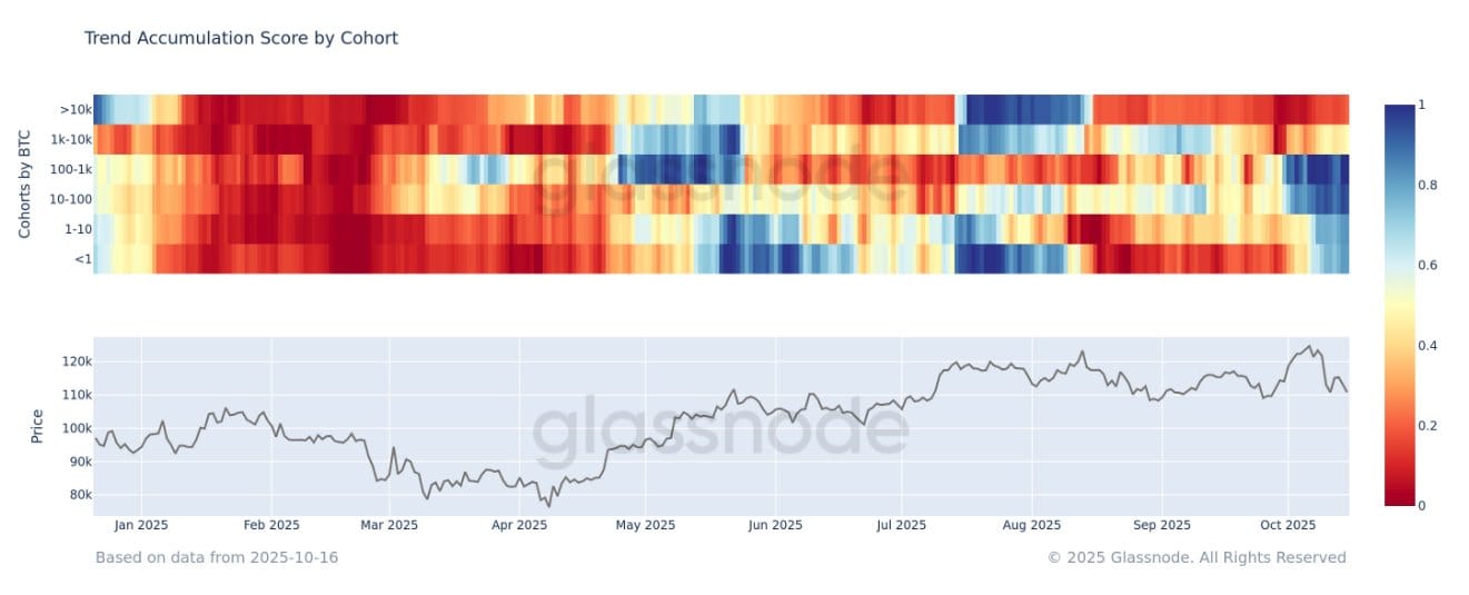 На день было отмечено, что инвесторы, держащие от 1 BTC до 1000 BTC, демонстрируют «сильное накопление».
