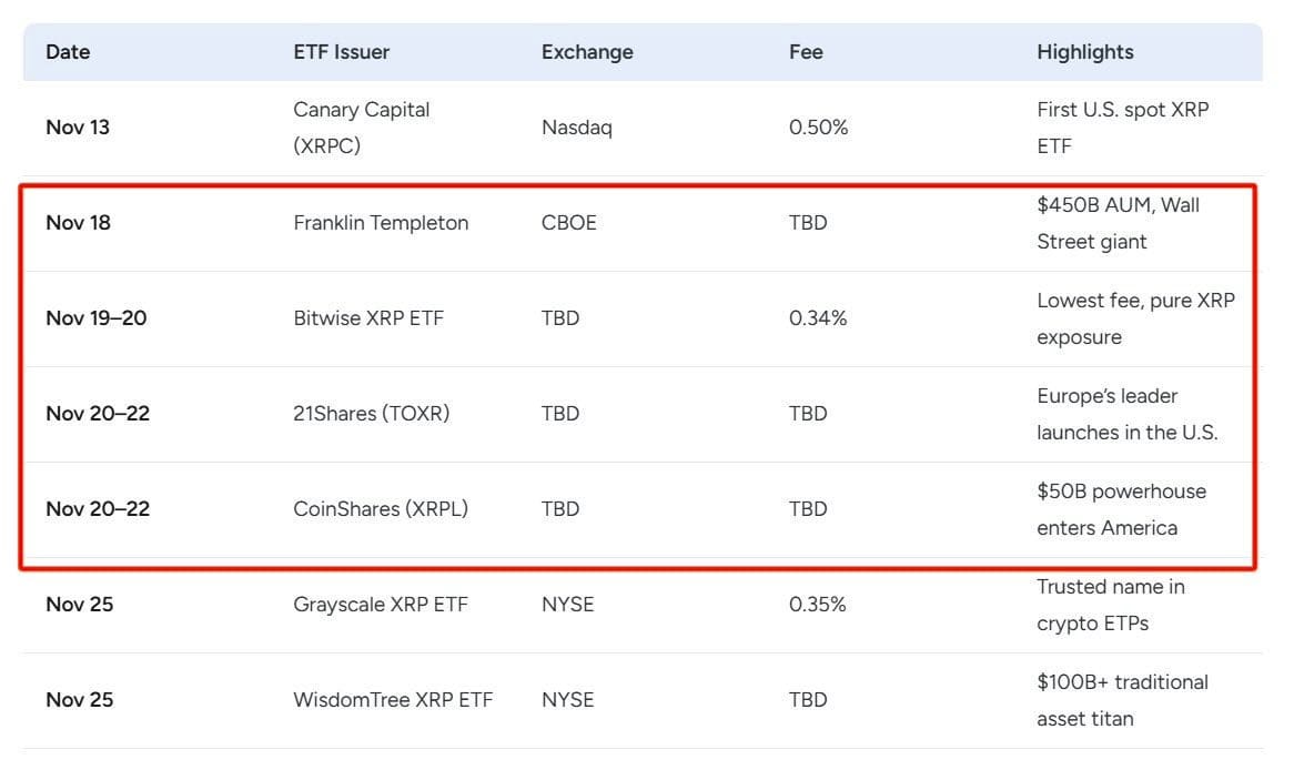 Четыре спот-ETF на XRP должны быть одобрены на этой неделе, еще три ожидаются в течение следующих 21 дня.