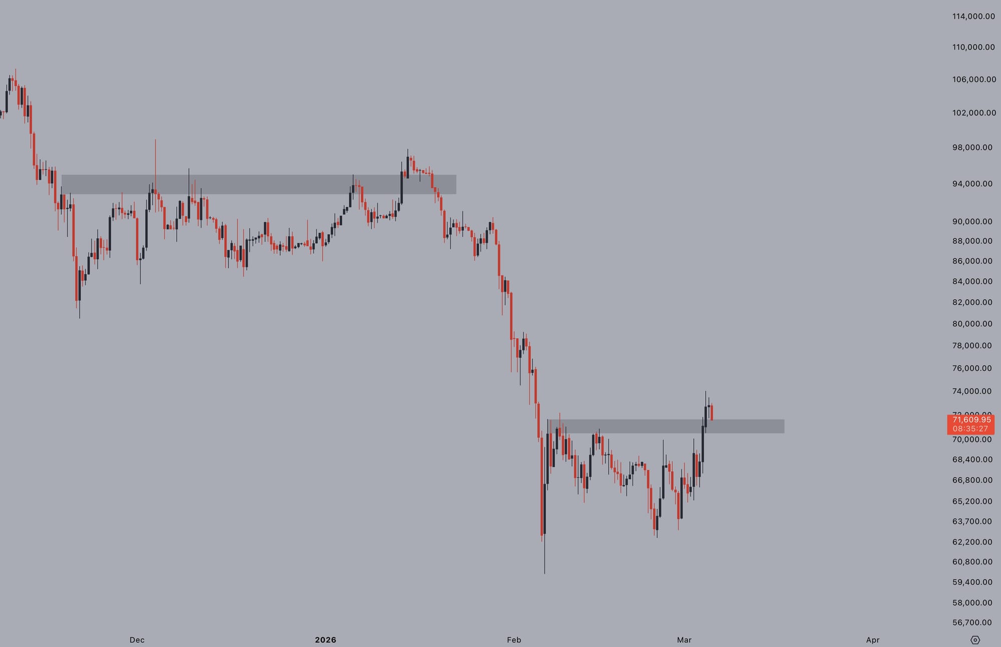 В приложенном графике он сопоставил последние дни с более длительной консолидацией конца 2025 года, которая тогда завершилась снижением.