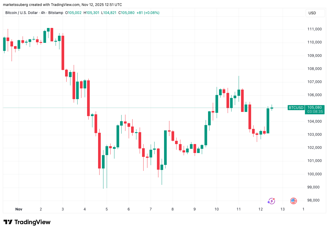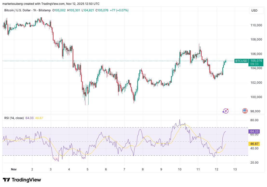 Биткоин (BTC) приблизился к внутридневным максимумам перед открытием торгов на Уолл-стрит в среду, когда быки стремились к отметке в $105,000.