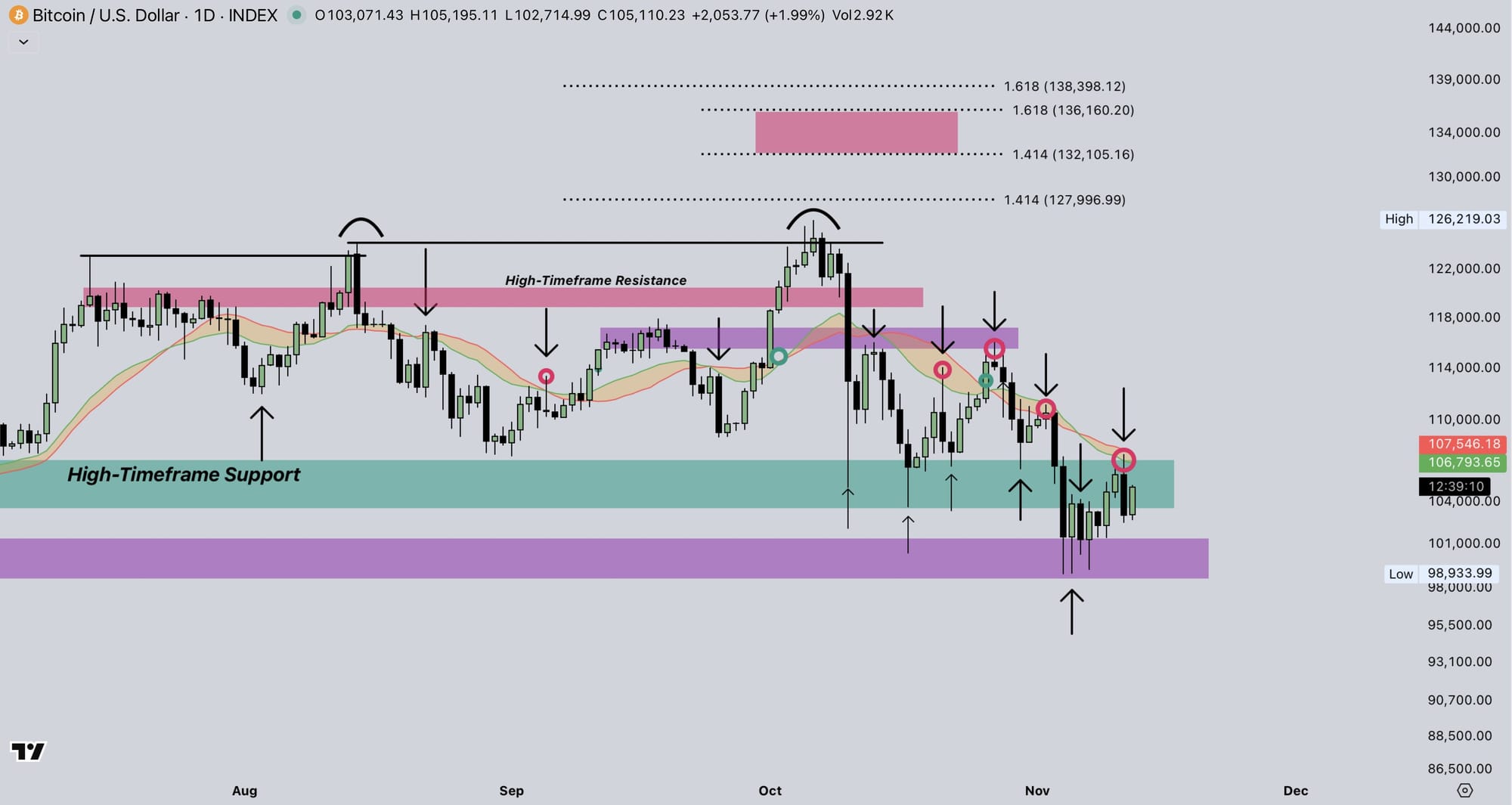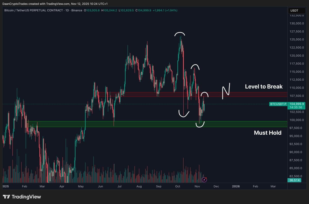 Ожидаем скачок до $107,400. Тогда это будет идеальная зона для шортов, если мы туда доберемся pic.twitter.com/BTuMVaWS0V— Crypto Tony (@CryptoTony__) 12 ноября 2025
