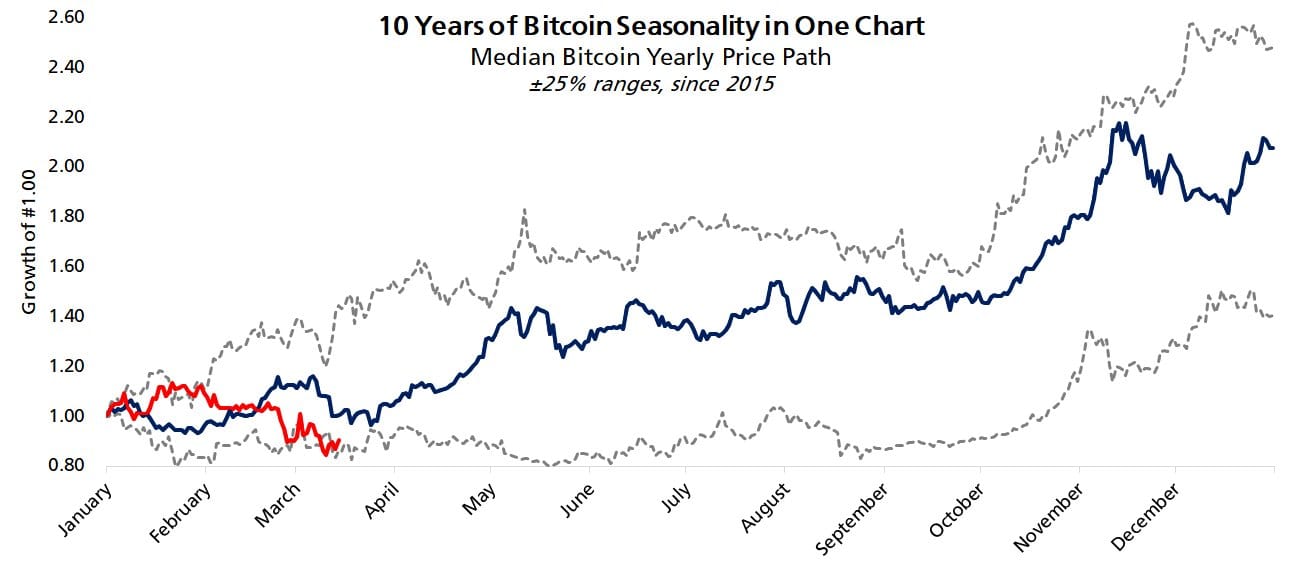 «Почти вся годовая доходность биткоина происходит в течение 2 месяцев: апреля и октября. Вполне возможно, что биткоин может достичь нового рекордно высокого уровня до июня.»