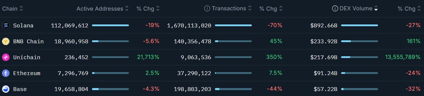 Unichain и Berachain возглавили рост блокчейн-активности в прошлом месяце