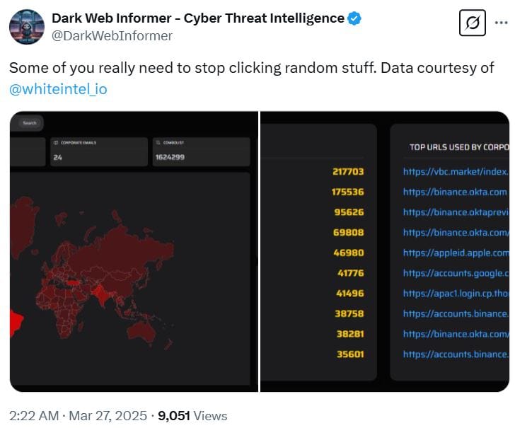 В последующем посте Dark Web Informer также намекнул на то, что кража данных была результатом компрометации технологии пользователей, а не утечкой с биржи Binance, добавив: «Некоторым из вас действительно стоит перестать нажимать на случайные ссылки».