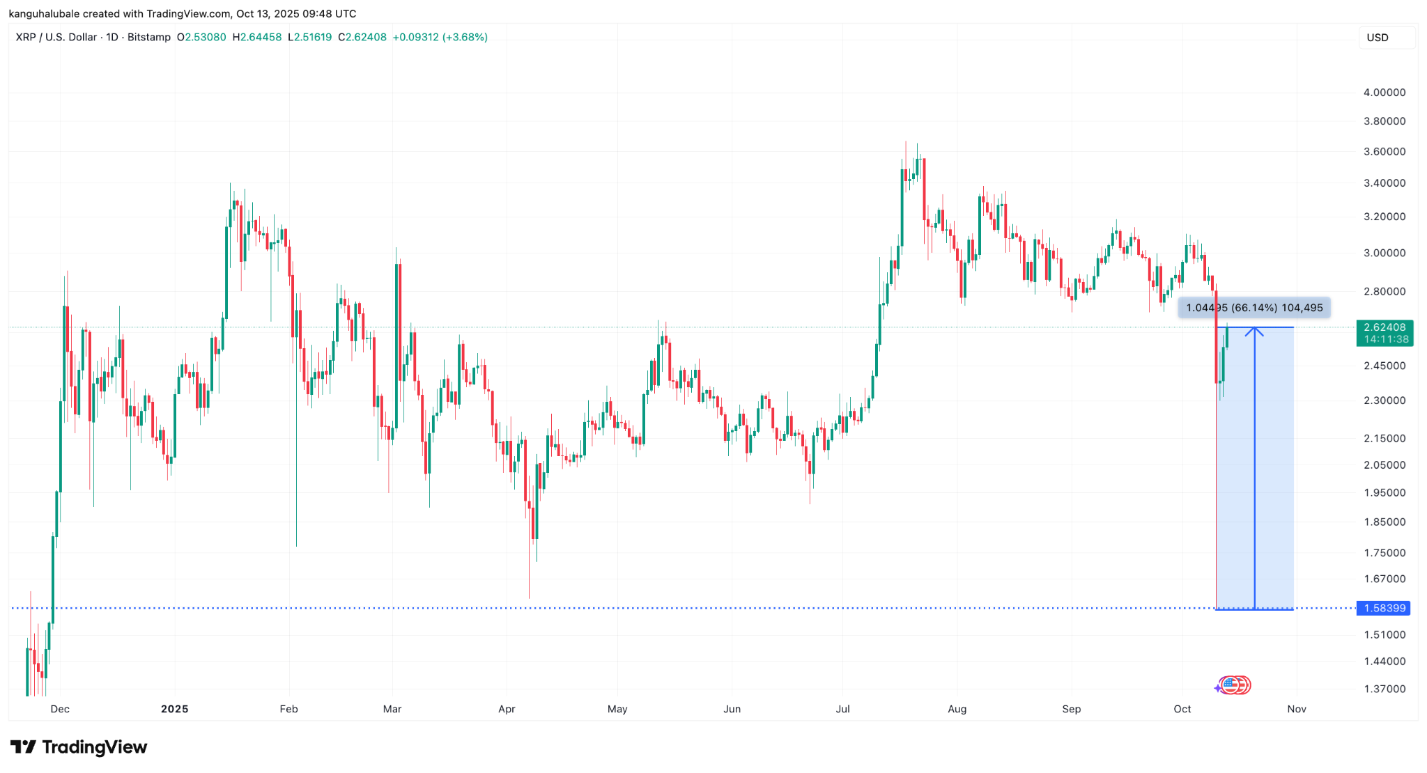 #XRP закрыл неделю выше годовой линии тренда. Чрезвычайно бычий сигнал! pic.twitter.com/Y0TZai7YPM— CryptoBull (@CryptoBull2020) October 13, 2025