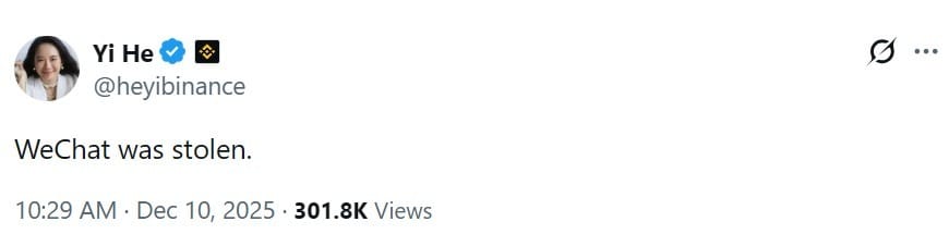 Новоназначенный сопредседатель Binance и сооснователь Йи Хэ сообщила в социальной сети X, что ее аккаунт WeChat был взломан после изменения старого номера телефона, подчеркивая потенциальные угрозы использования платформ Web2 для выдачи себя за крипто-руководителей.