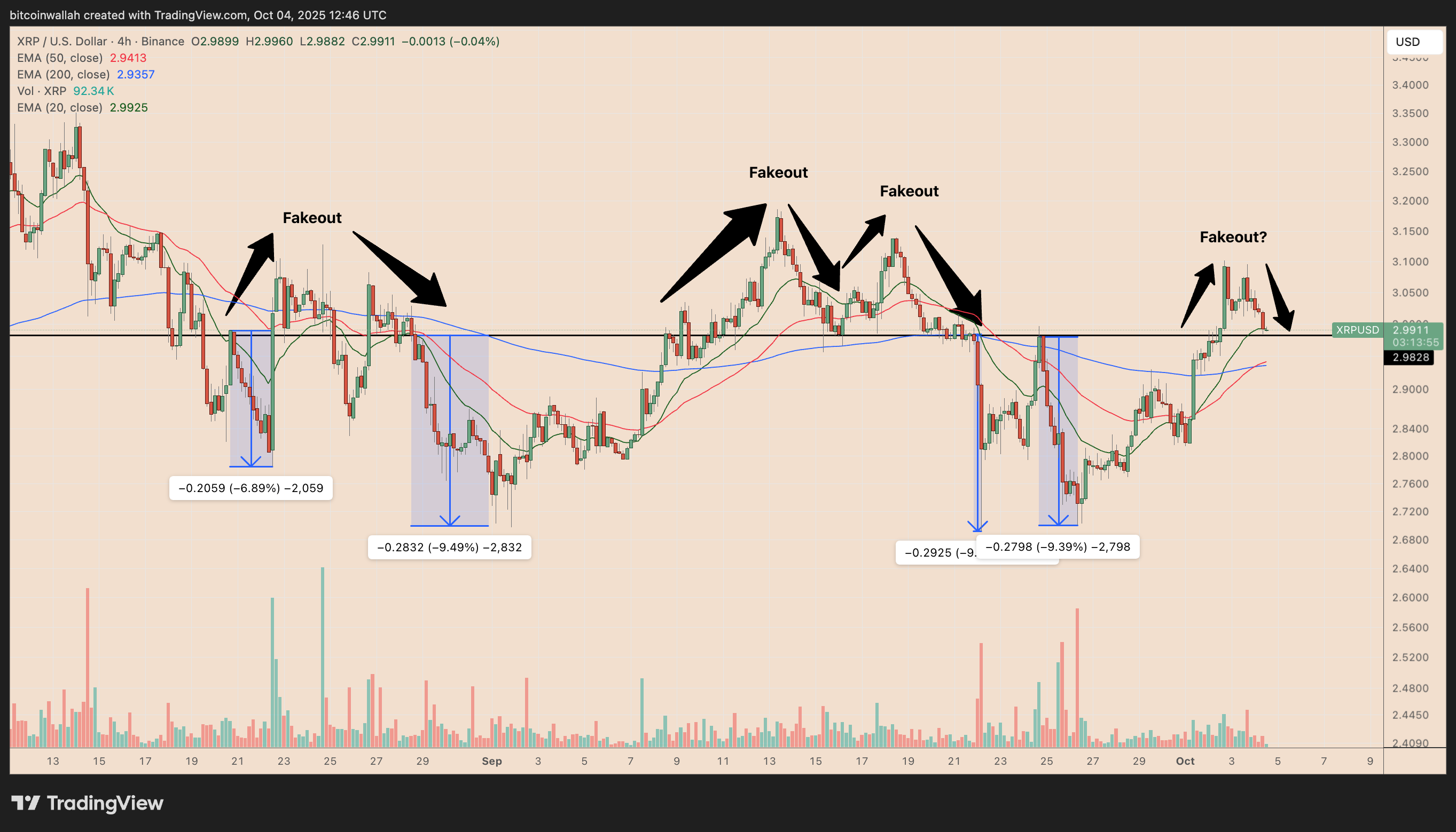 XRP (XRP) несколько раз пробивался выше отметки $3 с ноября 2024 года, но каждое повышение заканчивалось фальшивым прорывом и более глубокими коррекциями.