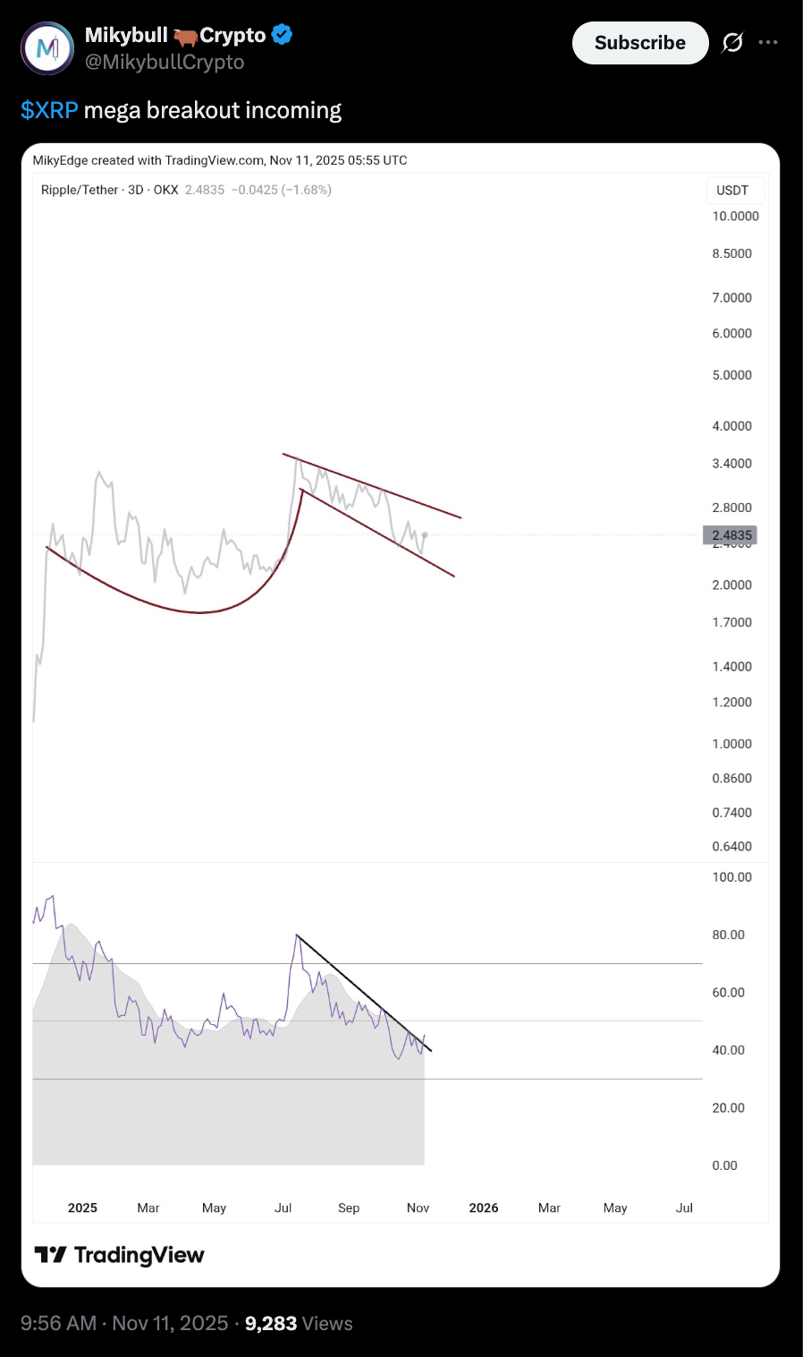 - Модель прорыва «чашка с ручкой» для XRP указывает на возможный рост до $5 к концу года.