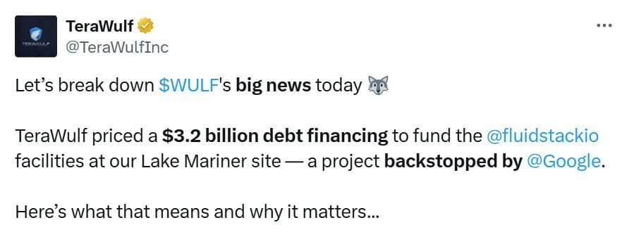 Другой майнер, TeraWulf, также объявил о выпуске старших обеспеченных облигаций на сумму 3,2 миллиарда долларов для финансирования расширения своего центра обработки данных на кампусе Lake Mariner в Баркере, штат Нью-Йорк.