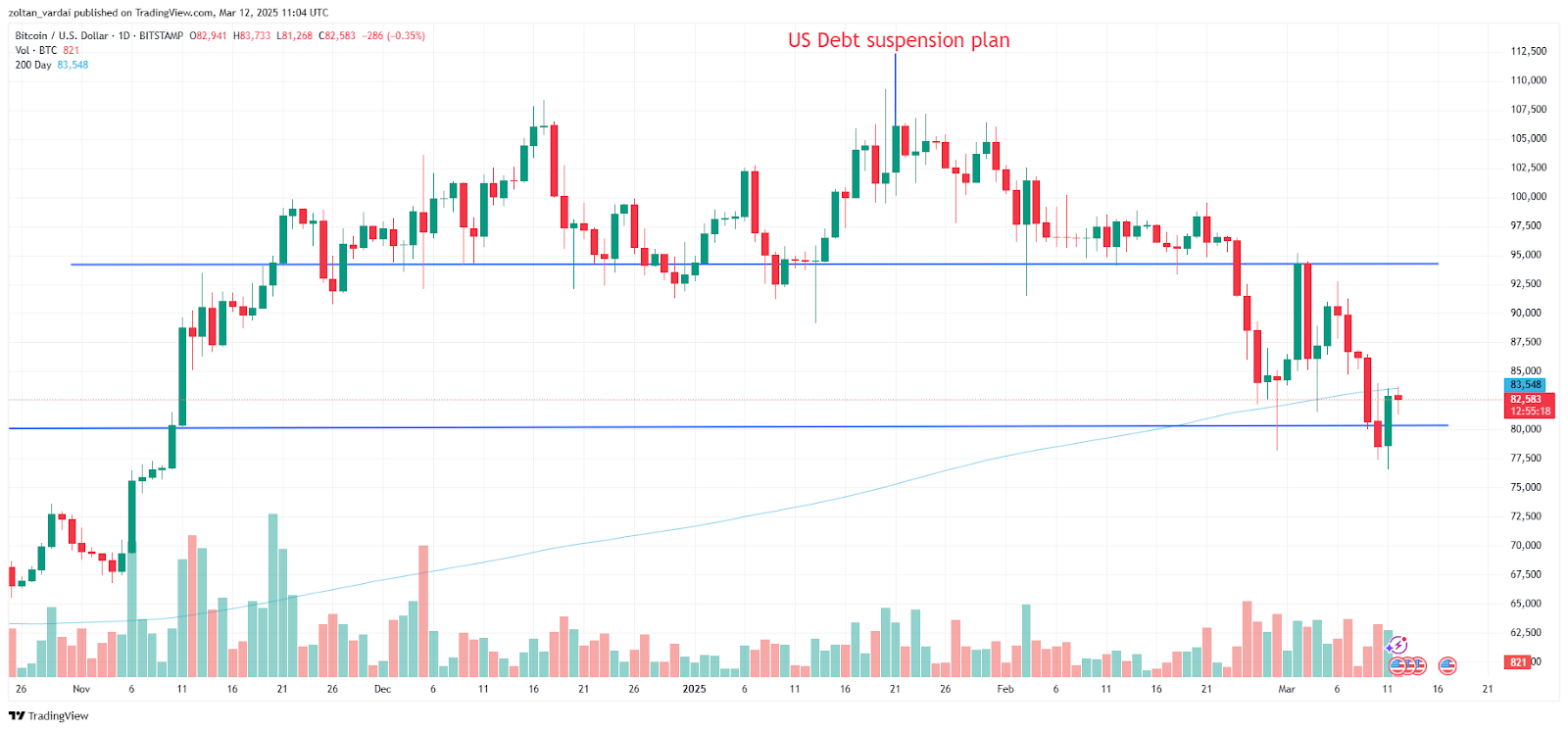 BTC/USD, дневной график с момента начала плана приостановки долга. Источник: TradingView