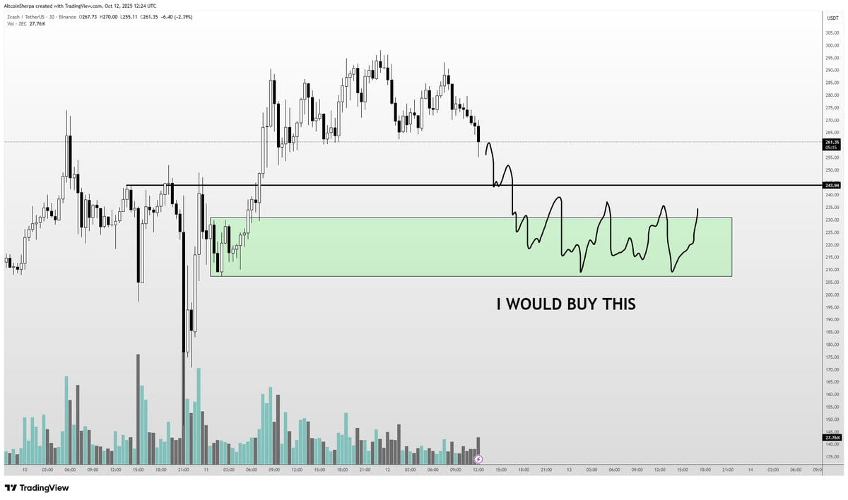 Падение ZEC ниже порога в $244 может вызвать каскад принудительных ликвидаций, углубляя откат перед возможным отскоком.